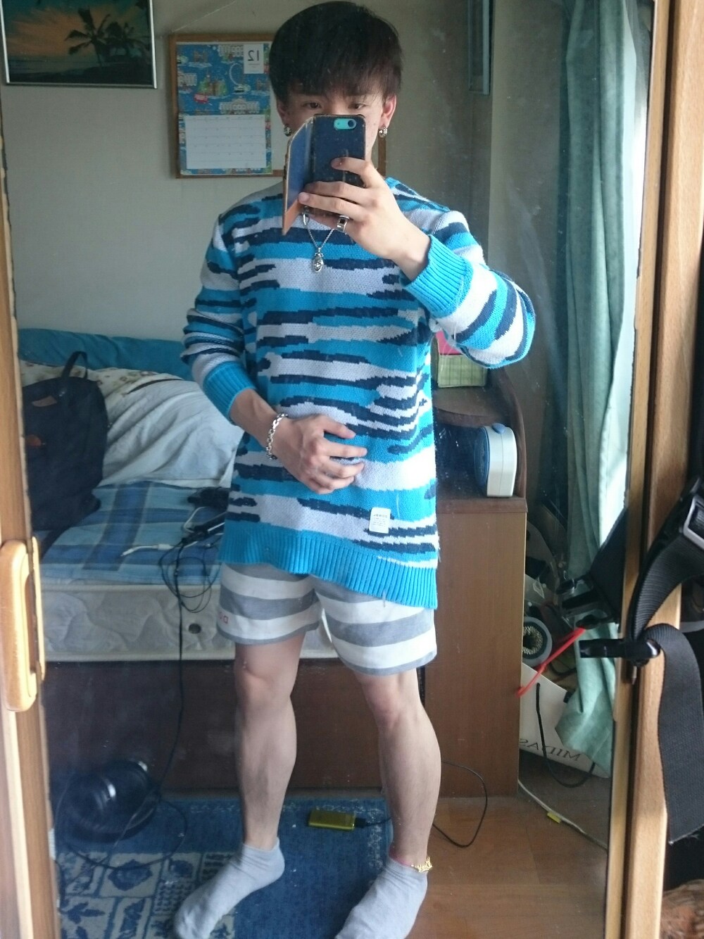 6月8日のコーデ!! トップス/dowbl/ニット ボトム/dowbl/ショーツ 前々からやってみたかったコーデ♥ 爽やかな感じでせめてました!!😤 青白な感じで夏を思わせるよーな服装だぜ😁 ちょいと暑いけど、ショーツが涼しくしてくれるおかげで丁度いい😍 アクセサリーはシルバーがほとんどですが、 よく見てみるとアンクルがゴールド&ピンクっていう組み合わせだぜ💑