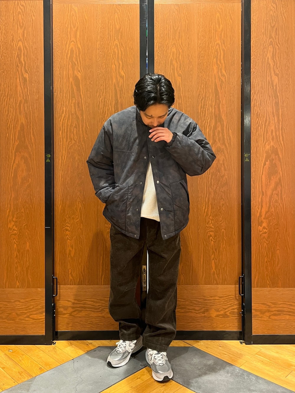 EKALのナイロンタッサージャケット。 中綿で厚すぎないのが丁度いいです。 ちょっとした外出とか。色で遊べる感じもいいですよね。 コーデュロイのパンツは定番品ですが、新色のオリーブがオススメです!