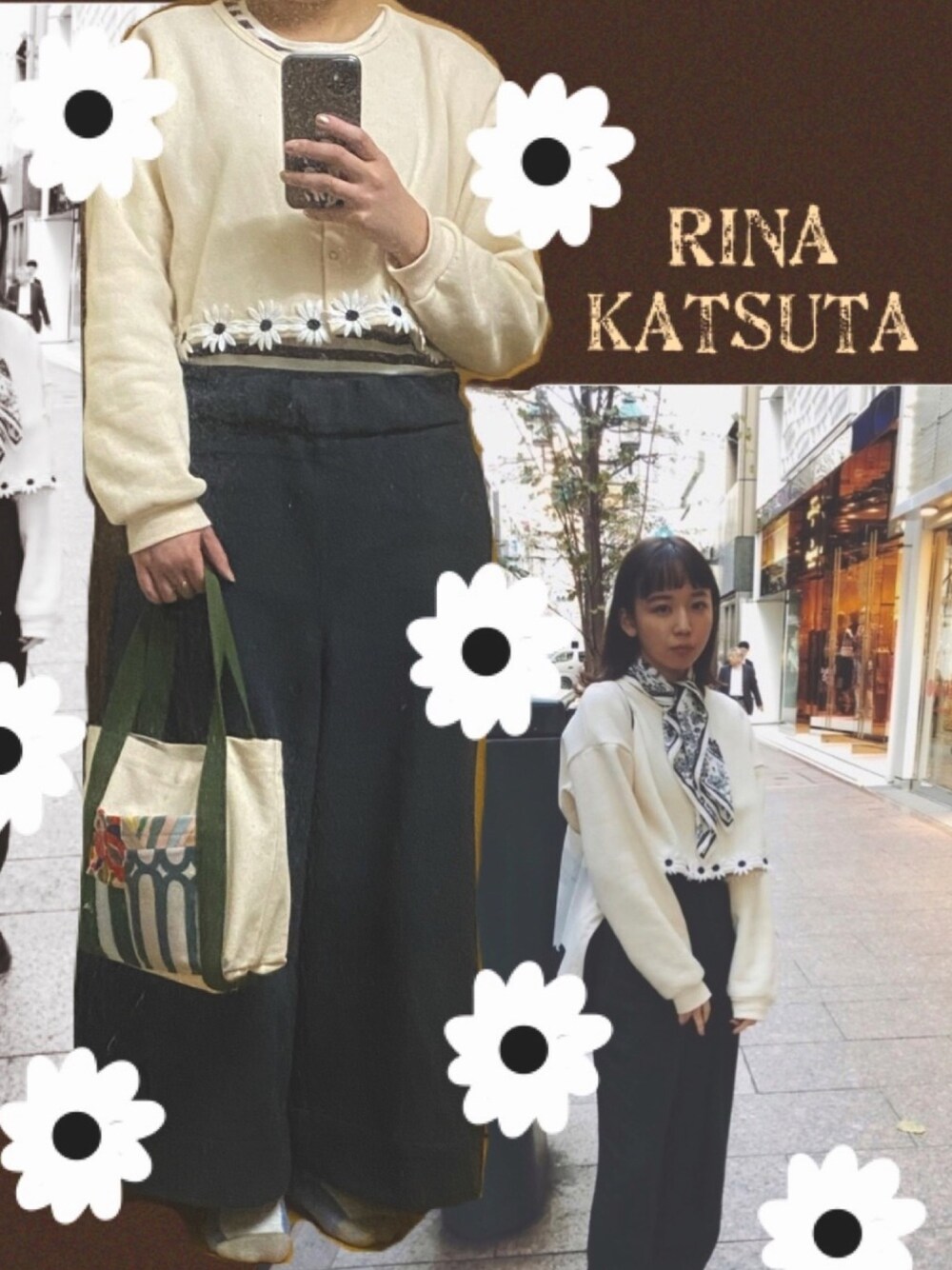 勝田里奈さんのコーデを真似してみました。 トートバッグは母お手製のminaのパッチワーク。