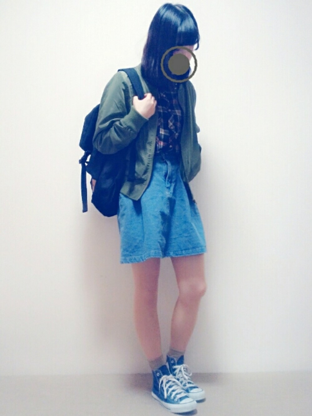 も。のデニムスカート「台形スカート」を使ったコーディネート