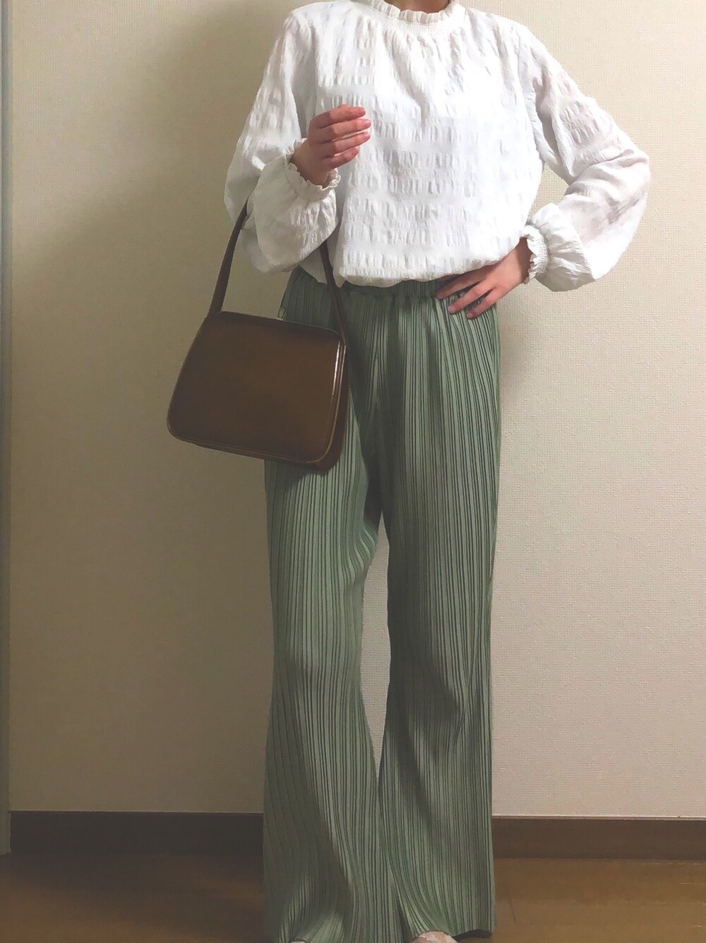 m.のその他パンツ「プリーツフレアパンツ」を使ったコーディネート