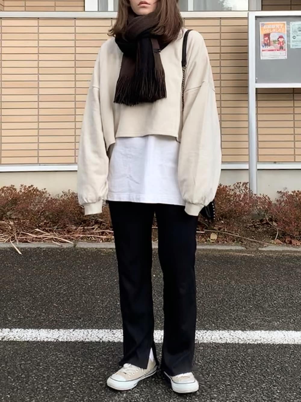 もののTシャツ/カットソー「ショート丈BIGスリーブプルオーバー079-7260」を使ったコーディネート