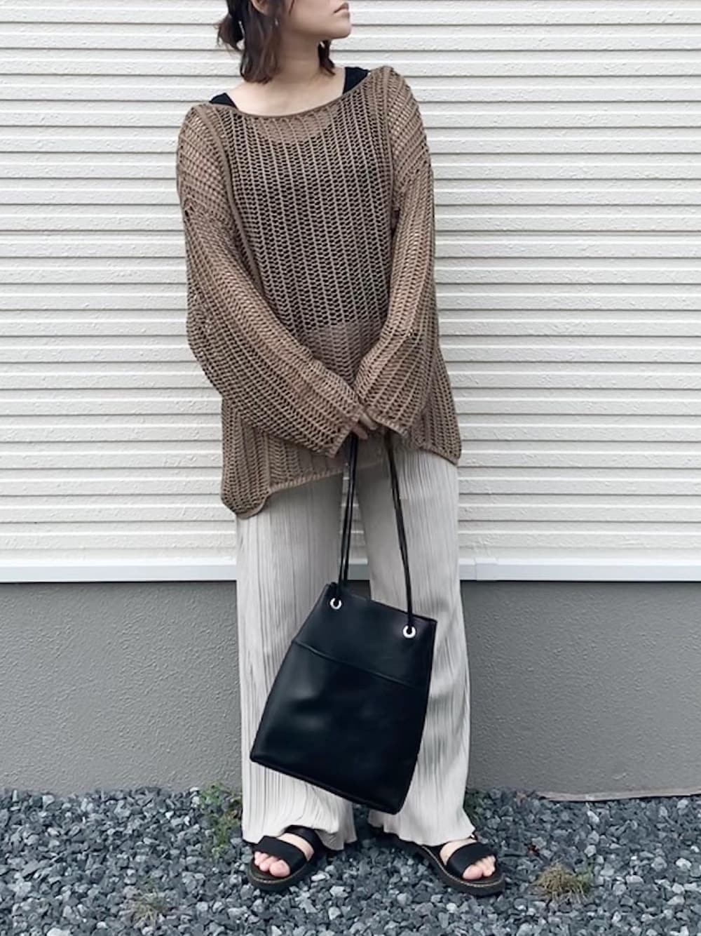 もののニット/セーター「5Gクラフトメッシュ2WAYニット/894010」を使ったコーディネート