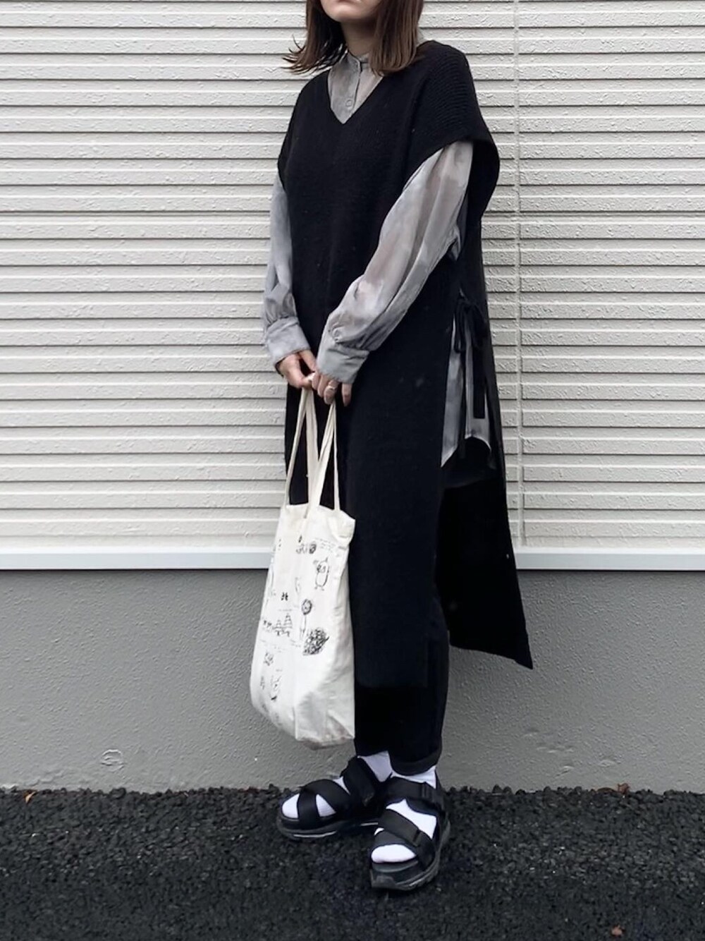 タイダイ柄をずっとダイダイと思っていたのは、私だけじゃないはず…🍊 ニットベスト、タイダイシアーシャツ 👉しまむら エコバッグ 👉Ne-net