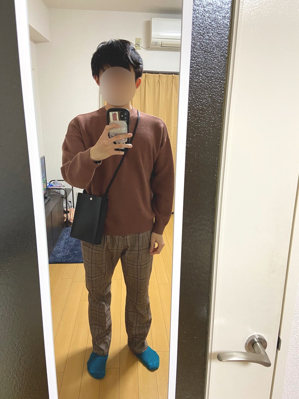 秋らしさを全面に出したベージュコーデ🟤 GUで買ったセーターが肌触りが良くて◎ MONO-MARTのスクエアバッグはシンプルでどのコーデにも合うと思います🙆♂️