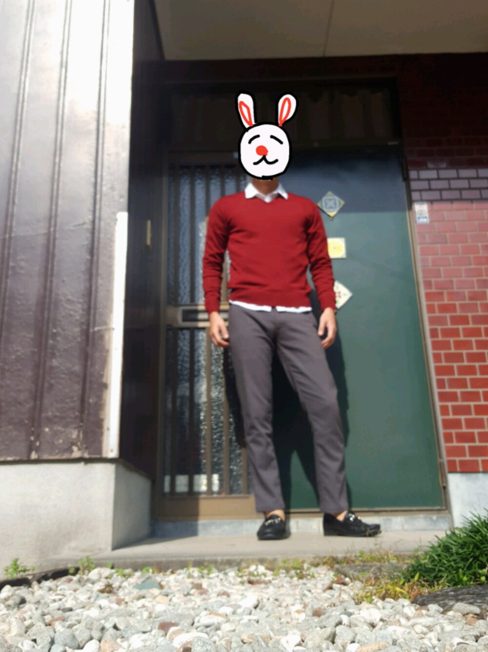ボルドーのニットだけど写真だと実物より明るく、レッドに見えちゃう🤔💭 背伸びして大人っぽくなりたい時期なので落ち着いた色を使ってみました!