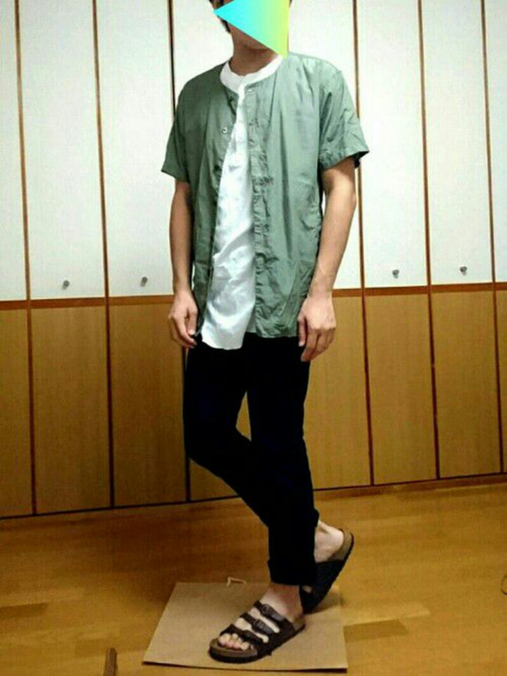 前回のコーデとものすごく似たような色になりましたが・・・笑 ノーカラーシャツをメインに使ってみました。