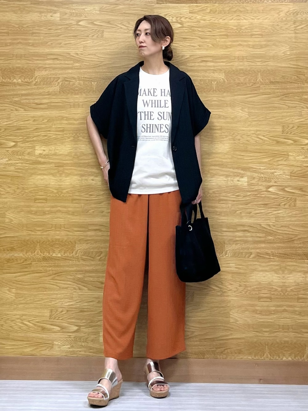 もす(SHOO・LA・RUE)のテーラードジャケット「【セットアップ可】麻調半袖ジャケット」を使ったコーディネート