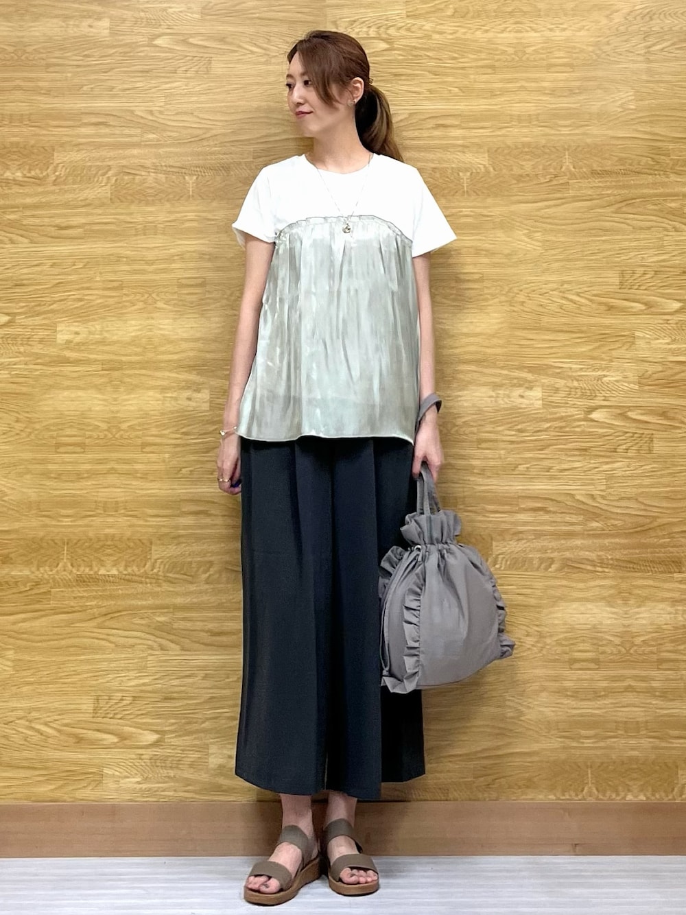 もす(SHOO・LA・RUE)のTシャツ/カットソー「【S-LL/ひんやり】インせず決まる ビスチェ風ドッキングトップス」を使ったコーディネート