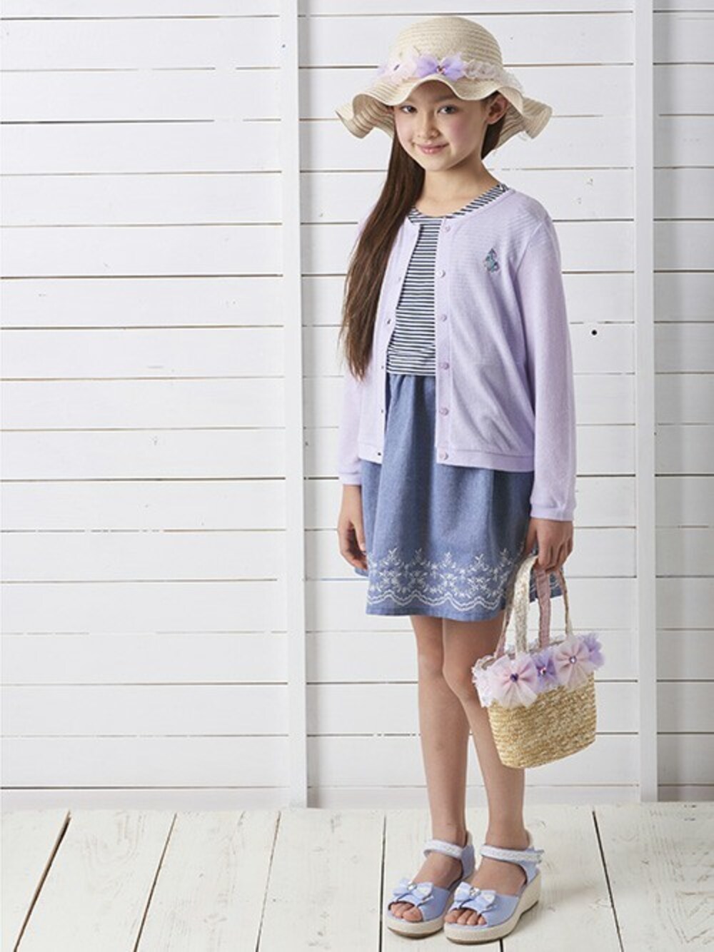 ●ガールズ 刺繍ワンポイント UVカット 長袖カーディガン 全6柄 「お洒落にUVカット☆長袖カーディガン♪」 お子様の大切なお肌を紫外線から守ってくれる UVカット加工されたお洒落なカーディガンです♪ 胸元にはワンポイントの刺繍入りで 女の子らしい可愛らしさもプラス★ UVカット率80%で、機能性とお洒落を楽しめ 日差しの強い日でも、外で元気に遊べちゃう♪ サラっと羽織れる薄手のカーディガンは 1枚は持っておきたい便利なアイテムです☆☆ 夏のお出かけのお供に・・・是非オススメです♪ ※ポケットはありません。 ※紫外線軽減、日焼け防止の加工がされております。 洗剤、太陽光に長時間さらされることにより 効果が弱くなります。ご了承下さい。 ●ガールズ プチパレ ボーダー エッフェル塔刺繍ワンポイント 半袖ワンピース 「1枚で素敵にキマル★重ね着風ワンピース♪」 ワンランク上のお洒落を楽しむ プチパレブランドより☆☆ まるで重ね着しているみたい★ 女の子らしいトータルコーデで着こなせる 存在感たっぷりのお洒落なワンピースです♪ ボーダーにキラキラのワンポイント刺繍がアクセント☆☆ ふんわり広がるスカートは、 裾のスカラップ刺繍が華やかで、 着た時のシルエットもキレイ!! 普段着にはもちろん◎ ちょっとしたお出かけにも大活躍です!! 夏らしい爽やかなワンピースで、 簡単お洒落コーデを楽しもう♪ ※ポケットは左に1つあります。 ※首後ろループボタン留めです。 ●ガールズ プチパレ たくさんチュールリボン かごバッグ 「夏のお出かけに大活躍★かごバッグ♪」 ハートストーン付きのチュールリボンや レースが華やかで女の子らしさ溢れる 可愛いかごバッグです♪ かばん口は巾着になっているので 中身が落ちなくて安心◎ 春夏の小物アイテムに大人気のかごバッグは トレンドに左右されず、インパクトもあり、 女の子らしさと季節感が一気にアップ♪ 同じモチーフの付いた可愛いハットと合わせて 持つものおススメです☆ お出かけがもっと楽しくなっちゃうね☆ ※内ポケットがひとつ付いています。 ※この製品のモチーフ(装飾品)は、 非常にデリケートなものですので、使用時、 保管時に強く引っ張ったり、引っ掛けたりする と破損する場合がありますので、 十分ご注意下さい。 ※雨での使用はできません。 万が一ぬれた場合は水気を拭き取り 形を整えて自然乾燥してくだい。 ※摩擦や水ぬれによる多少の色落ちの恐れがあります。 雨天の使用や白系統の服装時にはご注意下さい。 また、天然素材を使用しておりますので、 所々素材の飛び出しがありますが、 商品の特性ですので、予めご了承下さい。 ●ガールズ プチパレ チュールリボン付 ペーパーハット 「お出かけに大活躍☆ペーパーハット♪」 ワンランク上のお洒落を楽しむ プチパレブランドより☆☆ 暑い季節の日差し対策に!!! ハートストーン付きのチュールリボンや レースが華やかで女の子らしさ溢れる お洒落なペーパーハットです♪ 夏のお洒落を際立たせるペーパーハットは 通気性が良く、涼しげ◎ 同じモチーフの付いたかごバッグと 合わせるのもおススメです☆ 小物アイテムを上手に取り入れて 魅力的な女の子に変身しちゃお~♪☆ ※この商品は天然素材を使用し染色しているため、 染めムラ、摩擦、水濡れによる多少の色落ちの恐れがあります。 雨天のご使用や白系統の服装時にはご注意下さい。 また、所々素材の飛び出しがありますが、 商品の性質ですので予めご了承ください。 ※この商品に使用しているモチーフは、 非常にデリケートなので、使用時、保管時に 強く引っ張ったりすると破損する場合がありますので、 十分にご注意ください。 ※雨での使用はできません。 万が一ぬれた場合は水気を拭き取り 形を整えて自然乾燥してくだい。