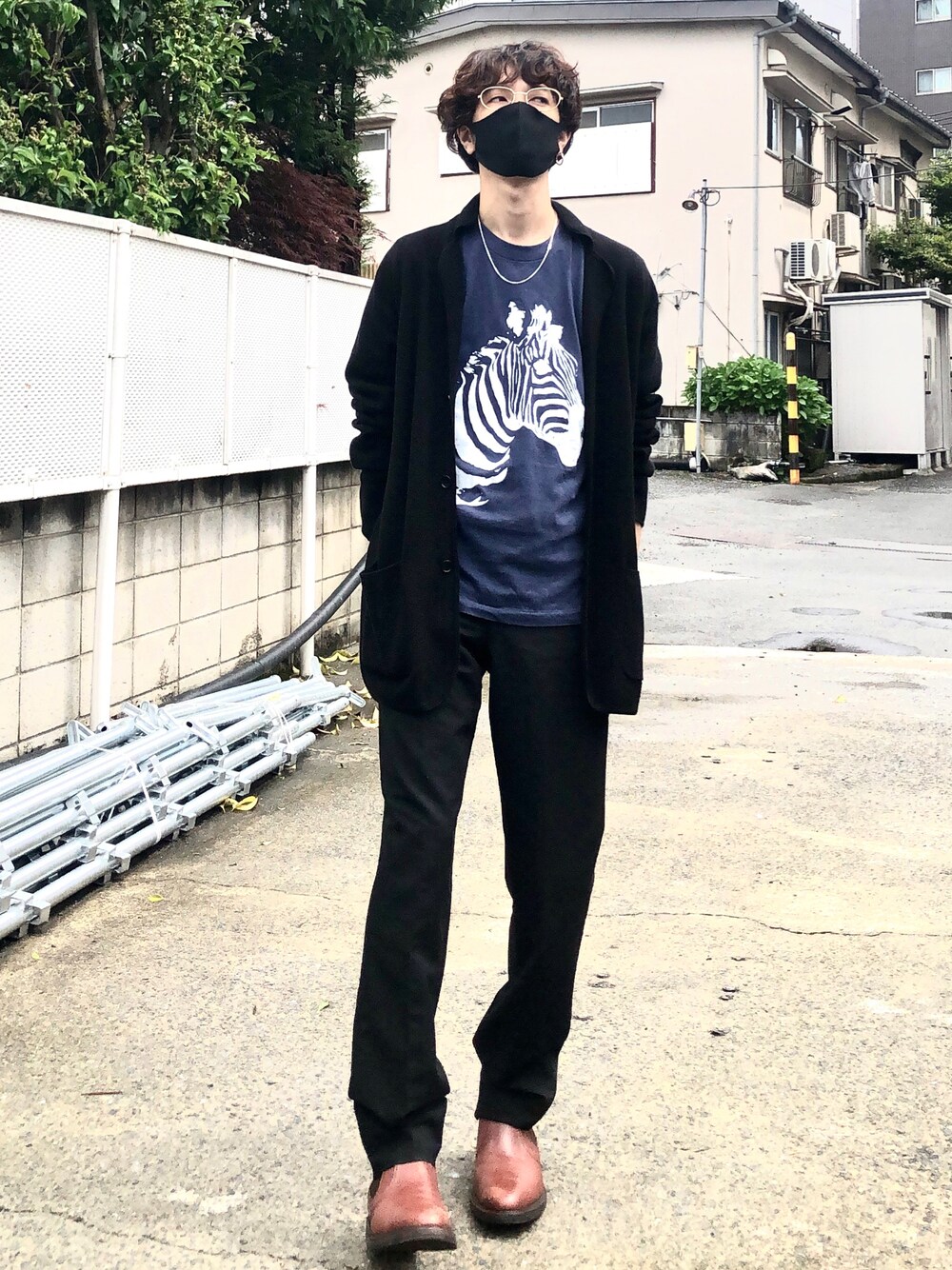 古着で買ったシマウマTでサファリ感を演出......できてないか...大きめのデザインTシャツ+カーディガンorテーラードジャケットはお気に入りで、よくやっちゃいますね