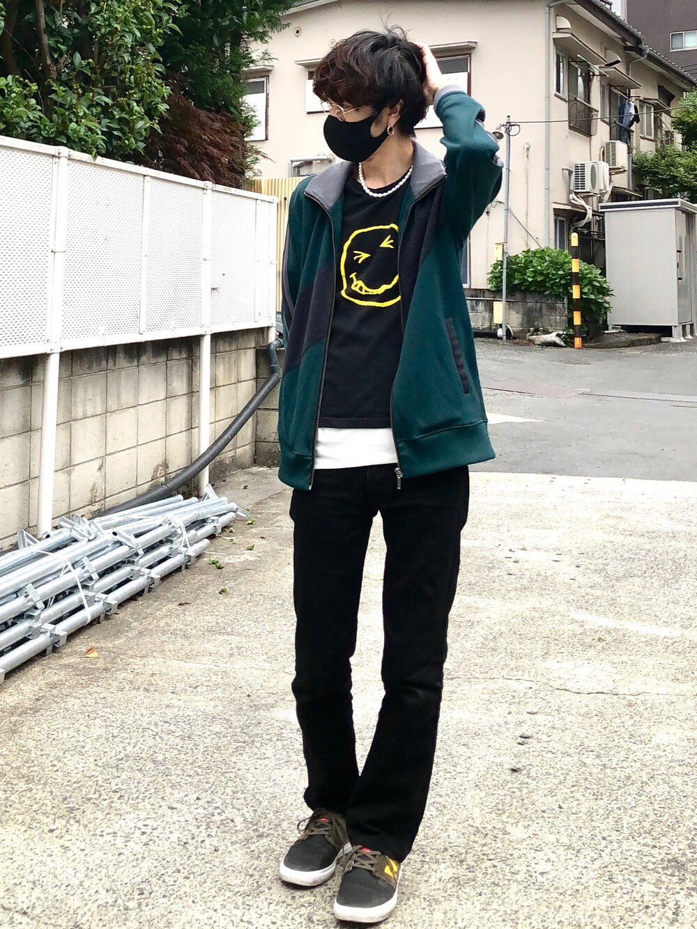 今日はジャージ。Tシャツは昔買ったナンバーナインのNIRVANAシリーズ。