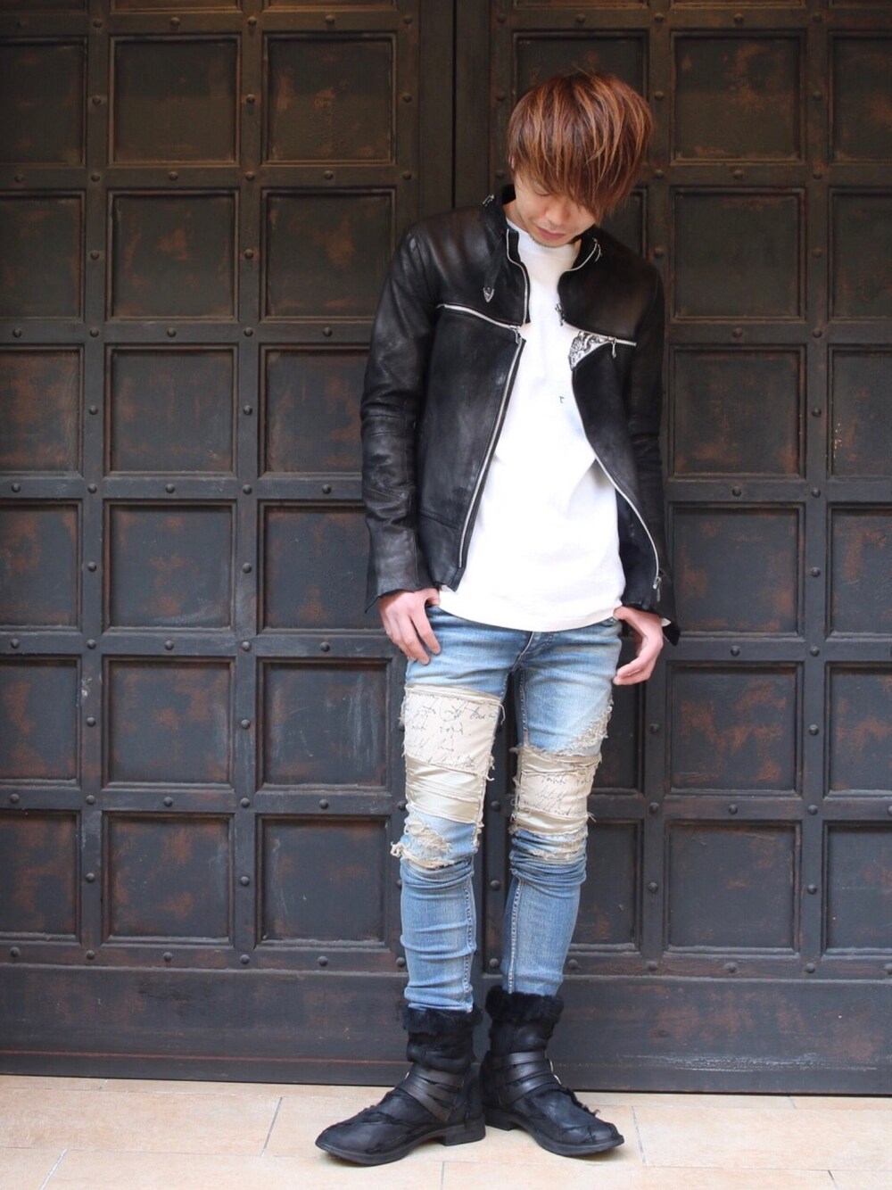 motohisa(ROYAL FLASH 六本木ヒルズ店)のライダースジャケット「【SENSE 2月号掲載商品】14th Addiction/フォーティーンスアディクション/別注CROSS ZIP SINGLE RD」を使ったコーディネート