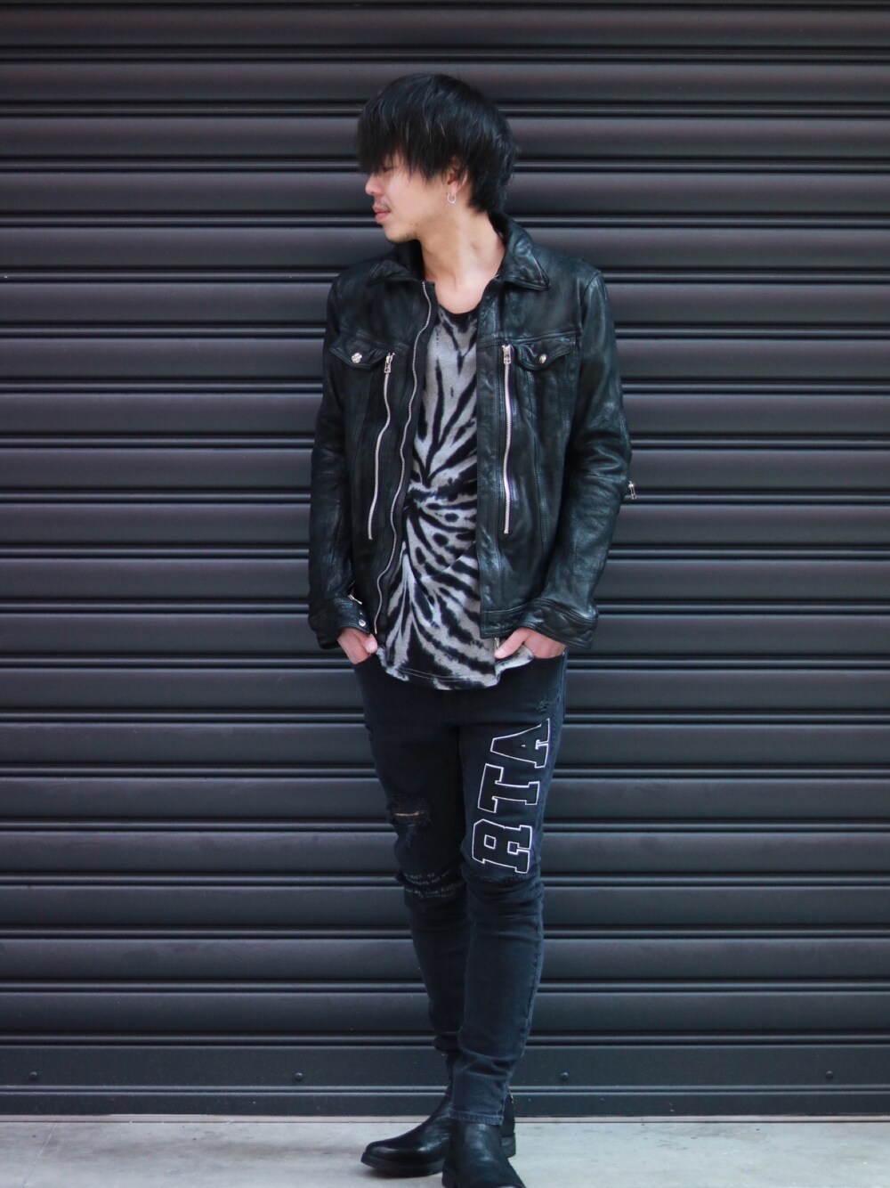 motohisa(ROYAL FLASH 六本木ヒルズ店)のその他アウター「【別注】14th Addiction/フォーティーンスアディクション/LEATHER G JACKET/レザー Gジャケット」を使ったコーディネート