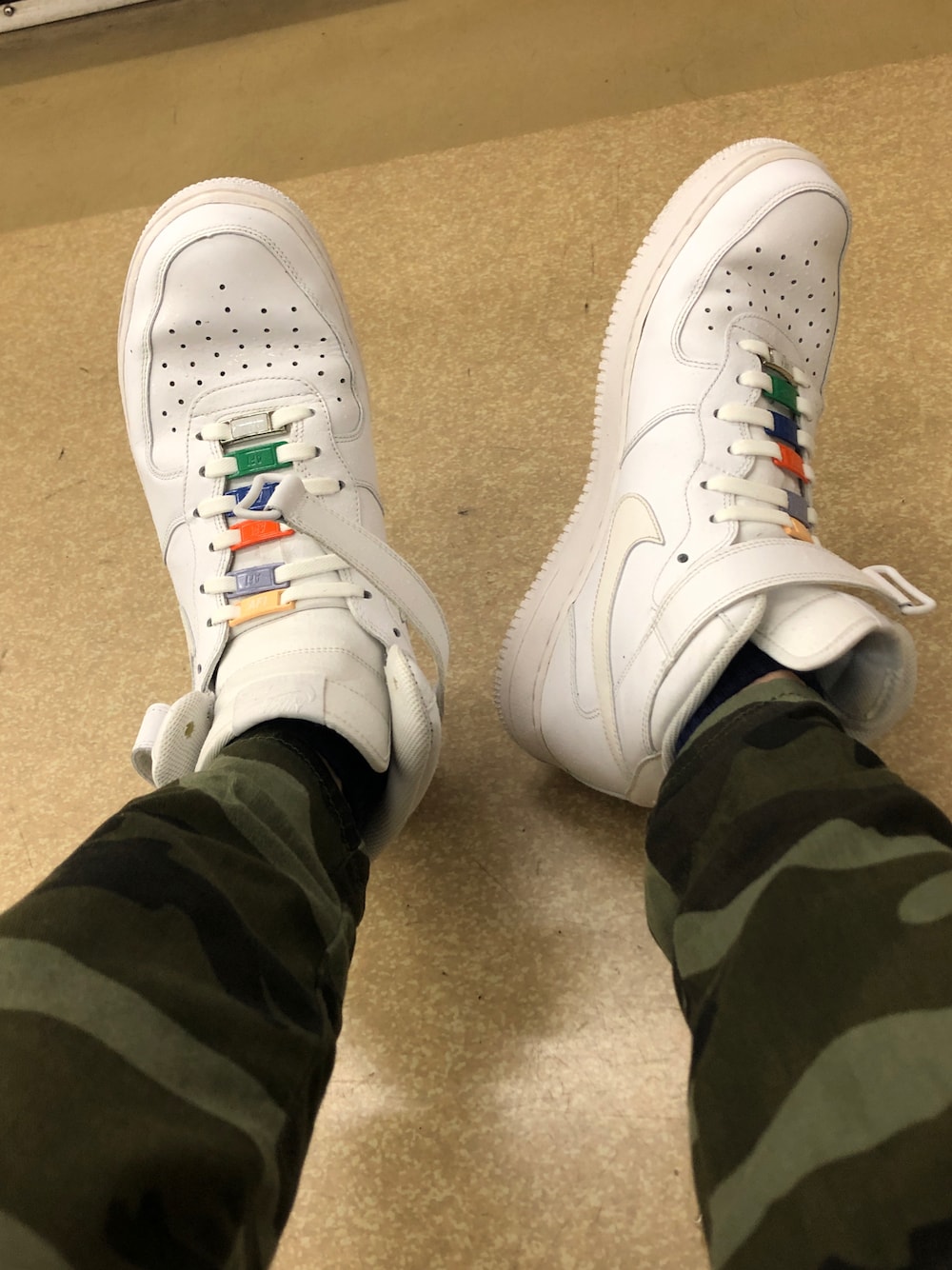 そこそこ強い雨の日に重宝するエアフォースミッド エアフォースファンの方々はベルトをちゃんと締めるかブラブラさせとくか賛否両論のようですが、パンツの裾が被らない時は外しておく派です