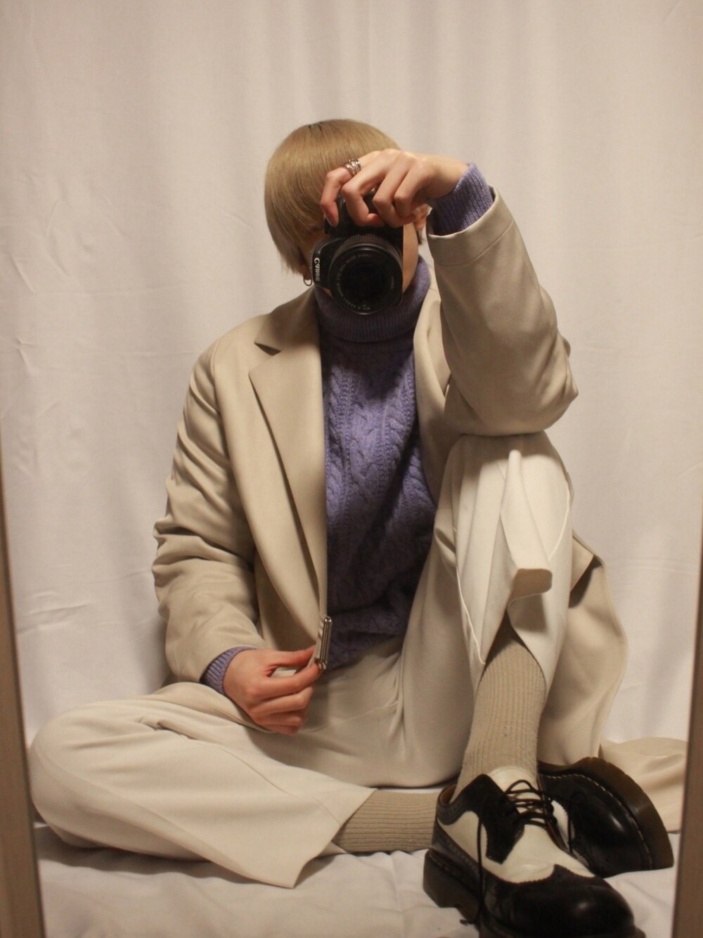 高見えホワイトコーデは差し色のニットがポイント outer:Luis tops:0.14/HAO pants:ozoc socks:UNIQLO shoes:Dr.Martin
