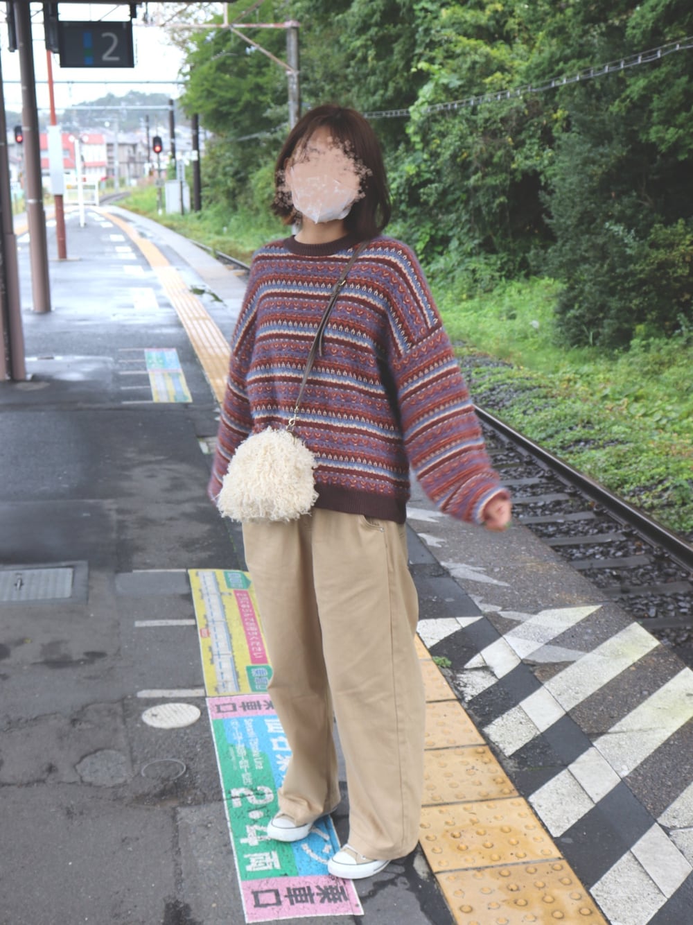 もつのニット/セーター「【merモデルまるちゃん着用】USED風柄ニットプルオーバー」を使ったコーディネート