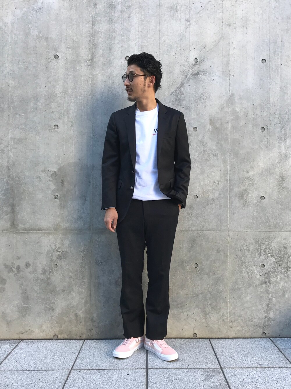 いつもご覧頂きありがとうございます😊 今日は忘年会の為、少しカチっとしたスタイルで🚶 セットアップにピンクのスニーカーで外す大人ストリートなルックがポイントです💡