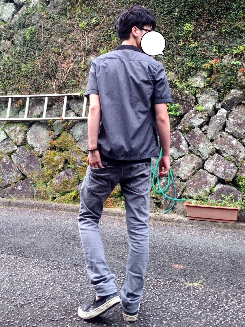 見てくれてありがとうございます❗️ あ、あつい😡 そりゃそうか😅 黒いもんね😎 けど男らしさ出したくてね😋 黒コーデ…か灰色コーデ?😉 あ、背面の方がカッコ良いから こっちにしました。😎 また見てくだーい❗️😬