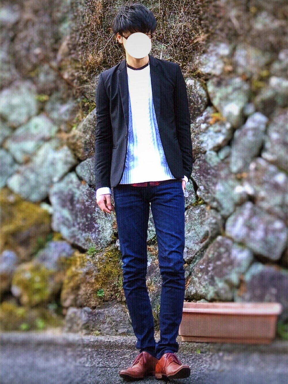 見てくれてありがとうございます❗️ 前回のやつの ジャケットと靴を変えただけコーデ。 ネックレスしたのに 光で飛んじゃった。 また見てください❗️👋