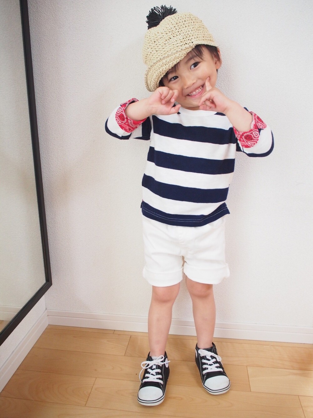yukiiiiのハット「ポンポン付きペーパーハット」を使ったコーディネート