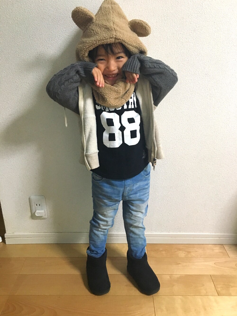 ご覧頂きありがとうございます♡ いいね、お気に入り、フォローも 嬉しいです♡ 雨の日で暇だったんでコーデをパチリ📷 ニセTALCでニセタルクマ笑 オバケ👻ポーズだそうです😂 インスタ→@yyuk_kii よかったら見てください♡