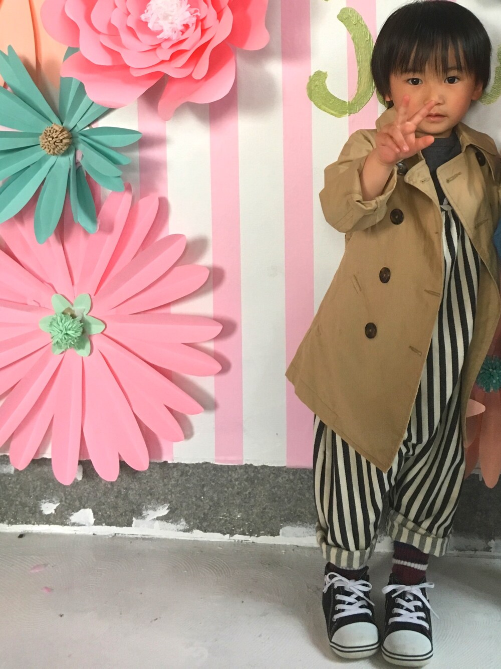 ご覧頂きありがとうございます♡ サロペスタもうひとつ♡ 少し前のコーデですがゆるゆるサロペに トレンチコートを羽織ってます?