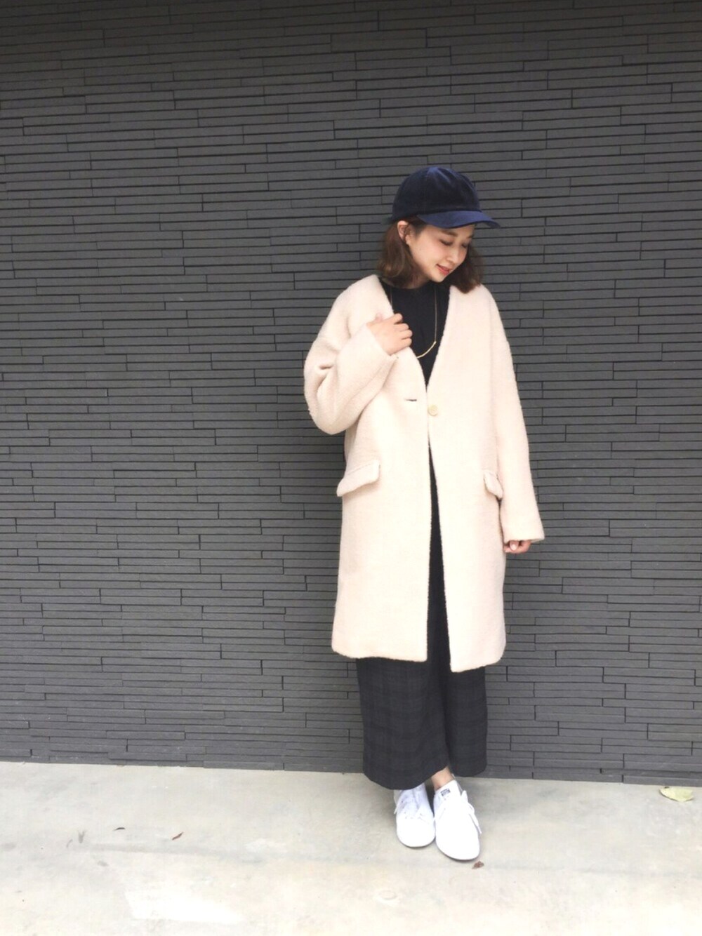 もってぃのその他アウター「スライバーニットVネックカラーコート」を使ったコーディネート