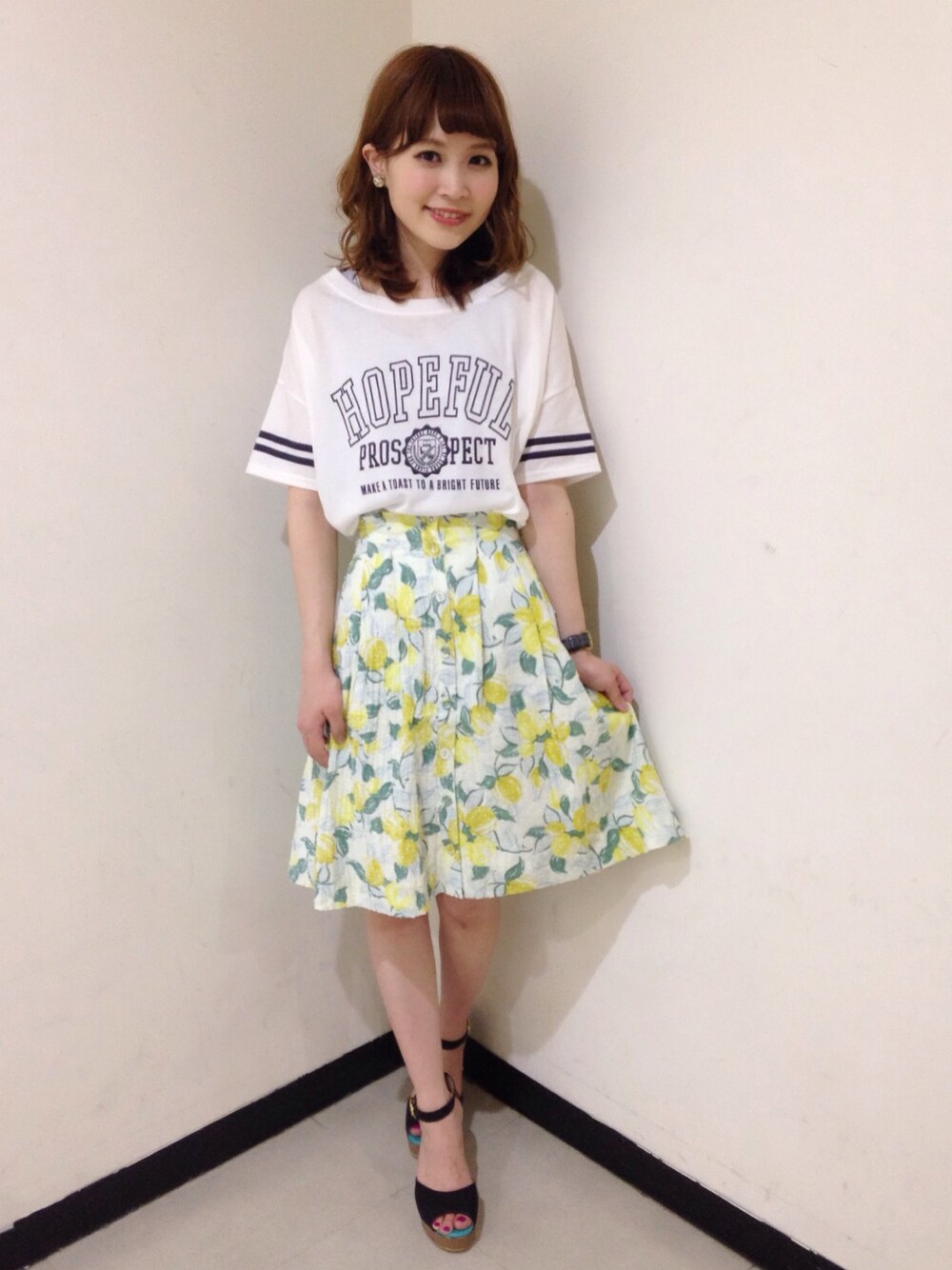 もってぃのスカート「フルーツプリントスカート」を使ったコーディネート