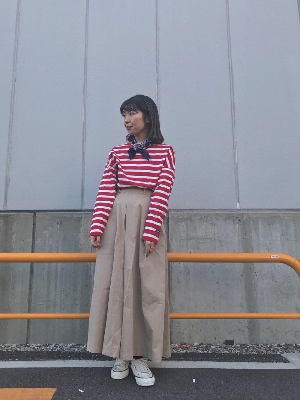 マリンコーデ⚓️⛴ 赤ボーダーは1枚でおしゃれコーデに❣️ instagramはじめました❣️ ぜひプロフィールからフォローお願いします☺︎