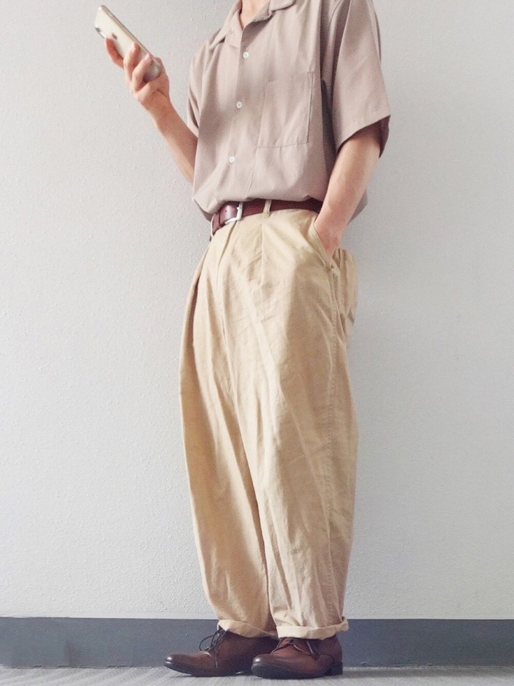 ベージュのワントーンコーデ💭✨ シルエットがゆるいからベルトと靴は レザーのものを使ってキレイめに😌 全て5000円未満のアイテム😌 良ければいいね、お気に入り、フォローお願いします🙌 Instagramリンクからぜひポチッと🌝 では(´-`).。oO🌙*゚