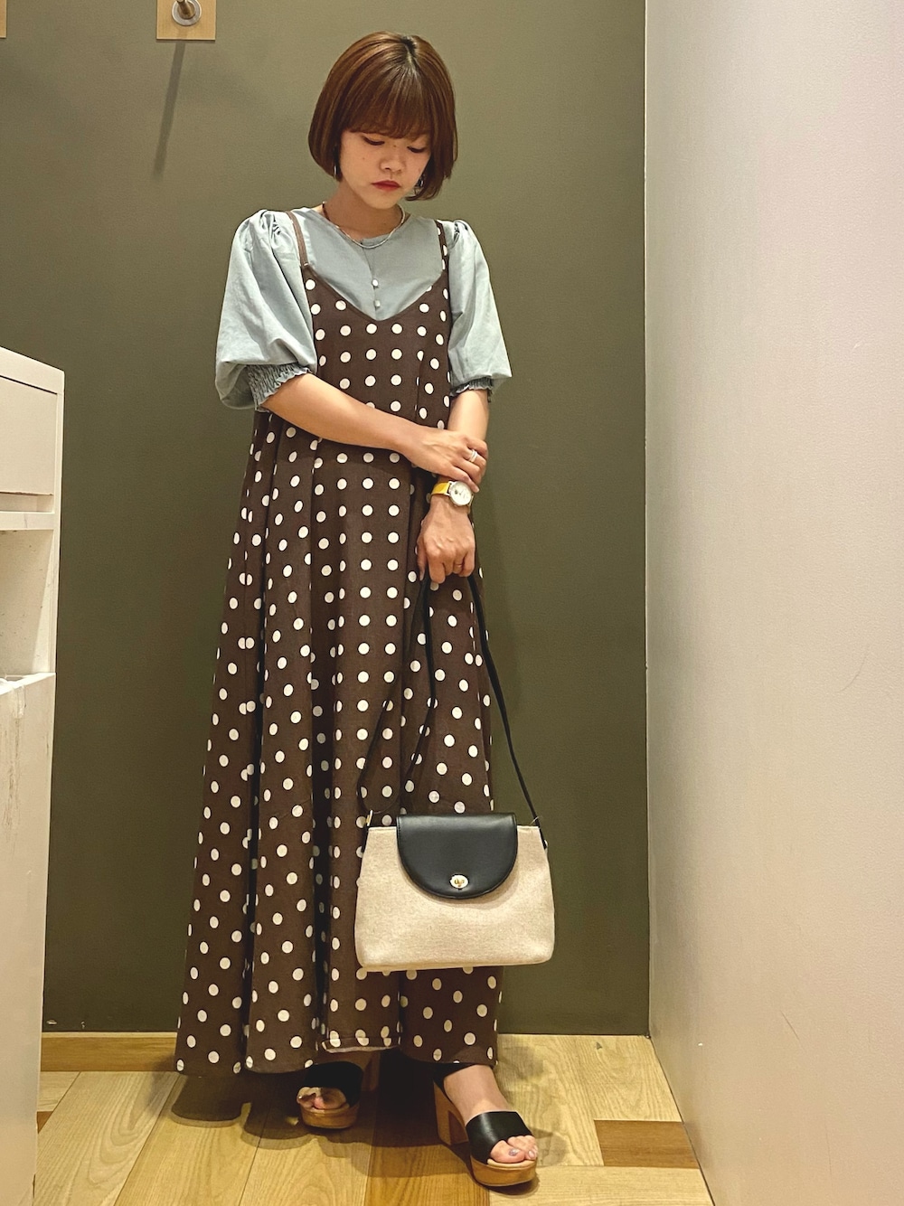 moun3のワンピース「・furry rate ドットキャミワンピース*」を使ったコーディネート