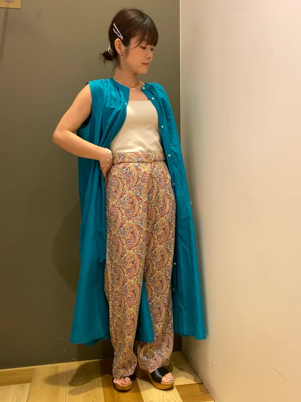 普段のサイズ S 着用のサイズ F インド綿のワンピース♪ サラッと軽い着心地で暑い夏も快適に過ごせそうです^_^b 鮮やかなカラーで着ているだけで明るい気分になりました⭐︎ 2枚目以降は前を閉じて着ているのでそちらも是非ご覧ください♪ ボトムスもとっても綺麗な柄パンツでオススメです♪