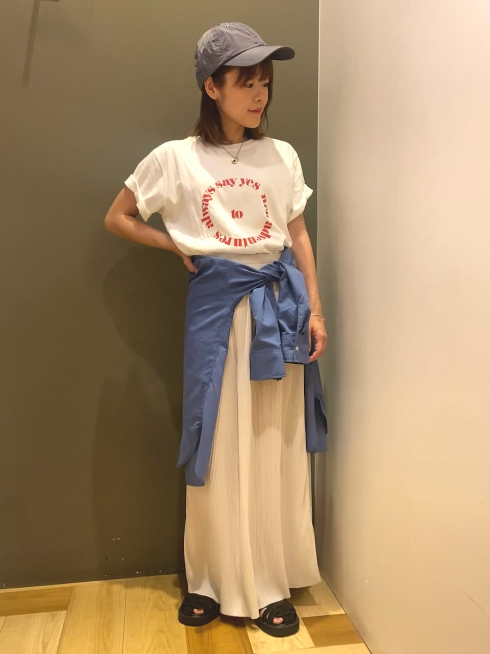 普段のサイズS 着用のサイズF ◯トップス 赤いロゴがカジュアルで可愛いTシャツです♪ ゆとりのある着心地でちょうどヒップが隠れる着丈でしたので、細身のパンツと合わせるのもオススメです。 ◯シャツ 大人っぽくてメンズ感もある落ち着いたブルーのシャツ♪ ただ羽織るだけでなくたすき掛けや腰に巻くスタイル等使い方が幅広いので一枚持っておくと便利です(o^^o) ◯スカート 伸縮性に優れていて履き心地がとても良いスカート です♪ ロゴTなどのカジュアルなトップスに合わせても子供っぽくならないのでオススメです(o^^o) 丈が少し長かったので、ウエストを一回折って履いています。 背の高い方にもオススメです♪ 白は透け感があったのでペチコートを合わせて下さいね(^ω^)