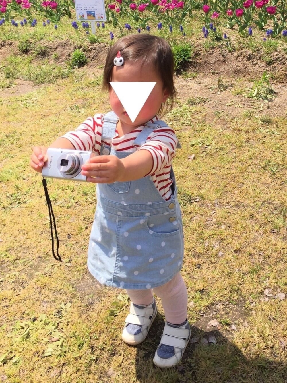 2017.4 チューリップ畑へ カメラにはまる囧 本人の写真は撮らせてくれない…(● ˃̶͈̀ロ˂̶͈́)੭ꠥ⁾⁾ せっかくチューリップが綺麗に咲いてるのに……