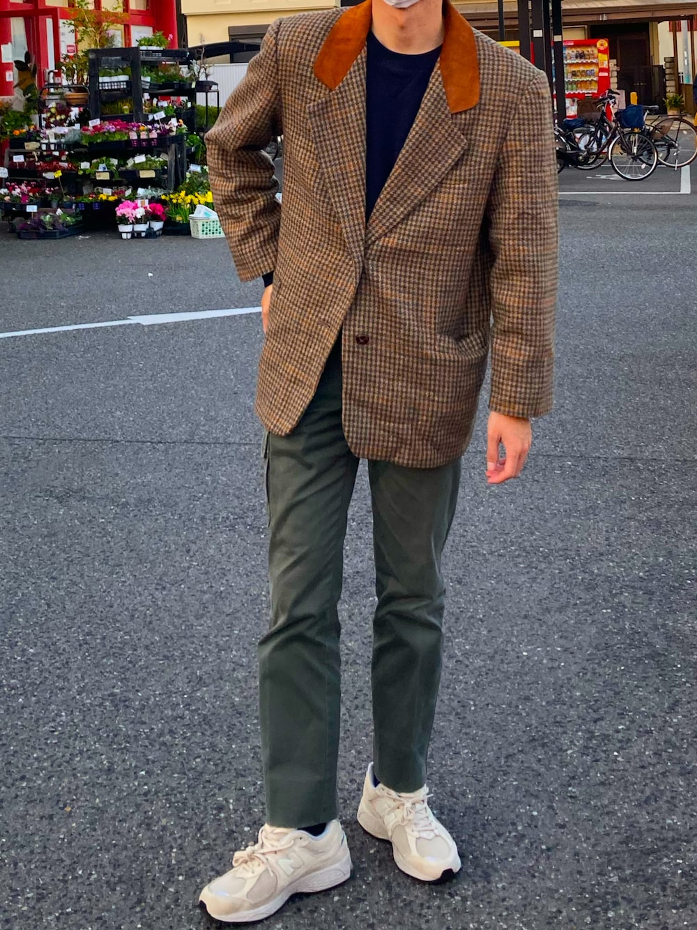 古着屋でこの前一目惚れしたジャケットで組みました。レディースですがサイズ感はちょうどいいです! これからコーデをもっと考えていきます。