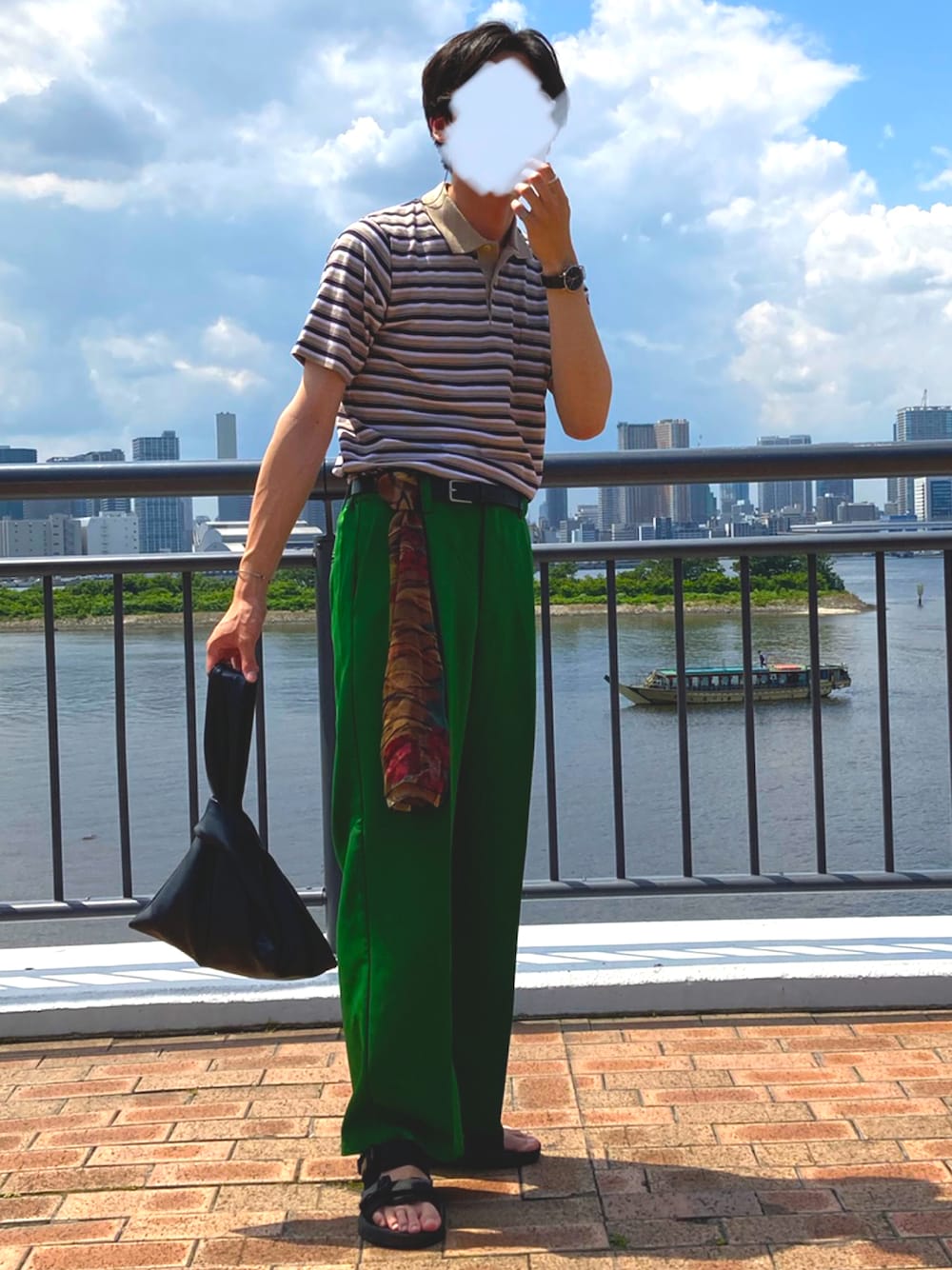 今日も東京観光コーデ。 今月1番の暑さがやってきたのでサンダル導入してしまいました🥺 今回も古着ミックスで。妹にもらったハンドルバッグと共に。ポロシャツカワイイ