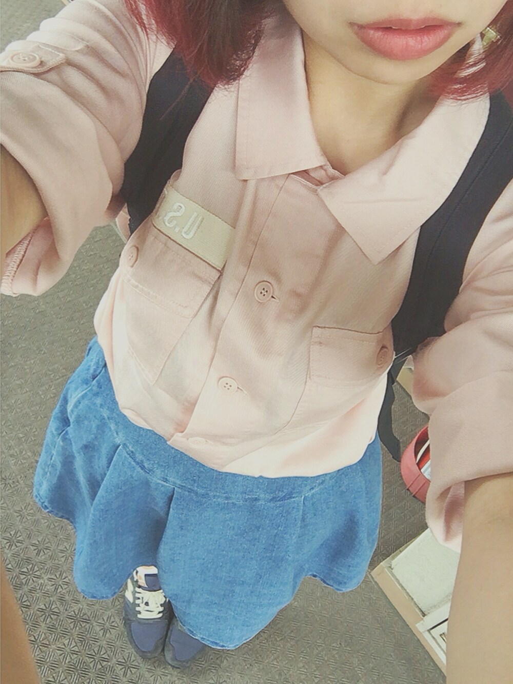 今日はおNEWのピンクのミリタリーシャツを使ってのコーデです◎可愛くて一目惚れした一枚です
