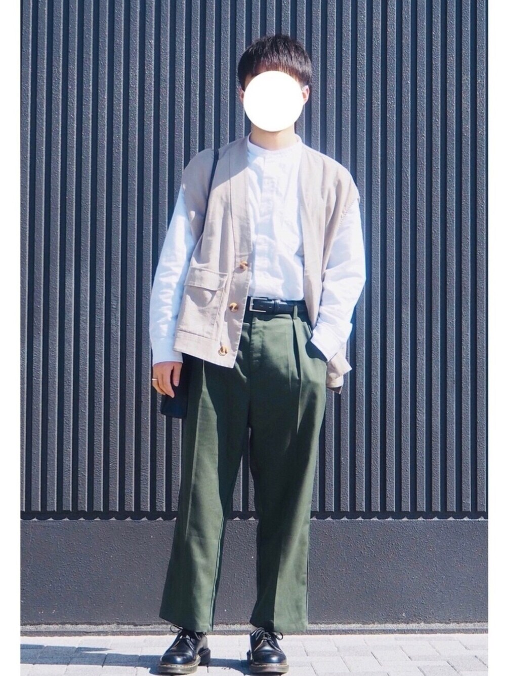 【ベストコーデ】 少し色使いに個性を出したコーデです! グリーンパンツは他のアイテムが暗めだととモードな印象になりやすいので、グレーやホワイトなどの明るい色を入れることで、印象を柔らかくしてます。(モード系ももちろん好きです)