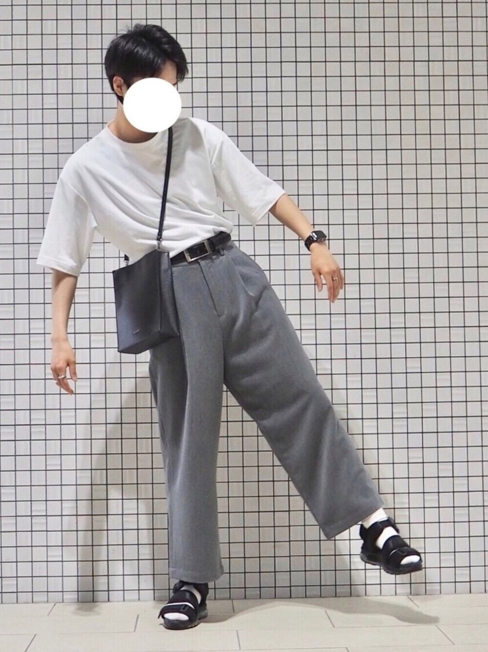 見ていただきありがとうございます! てもやです! 白×グレーコーデです! このモノマートさんのワイドパンツは、2年前に購入したモノですが、今もなおスタメンのパンツです! 裾が広く、ドレープが良く出るので、歩くのが楽しいです笑(歩いてる時に鏡とかあると足元見ちゃいますね笑) 全体的にゆったりとしたコーデなので、タックインでメリハリをつけて、スタイルをよく見えるようにしました! トップスと靴下の色を合わせることで全体的にまとめまりを持たせています!