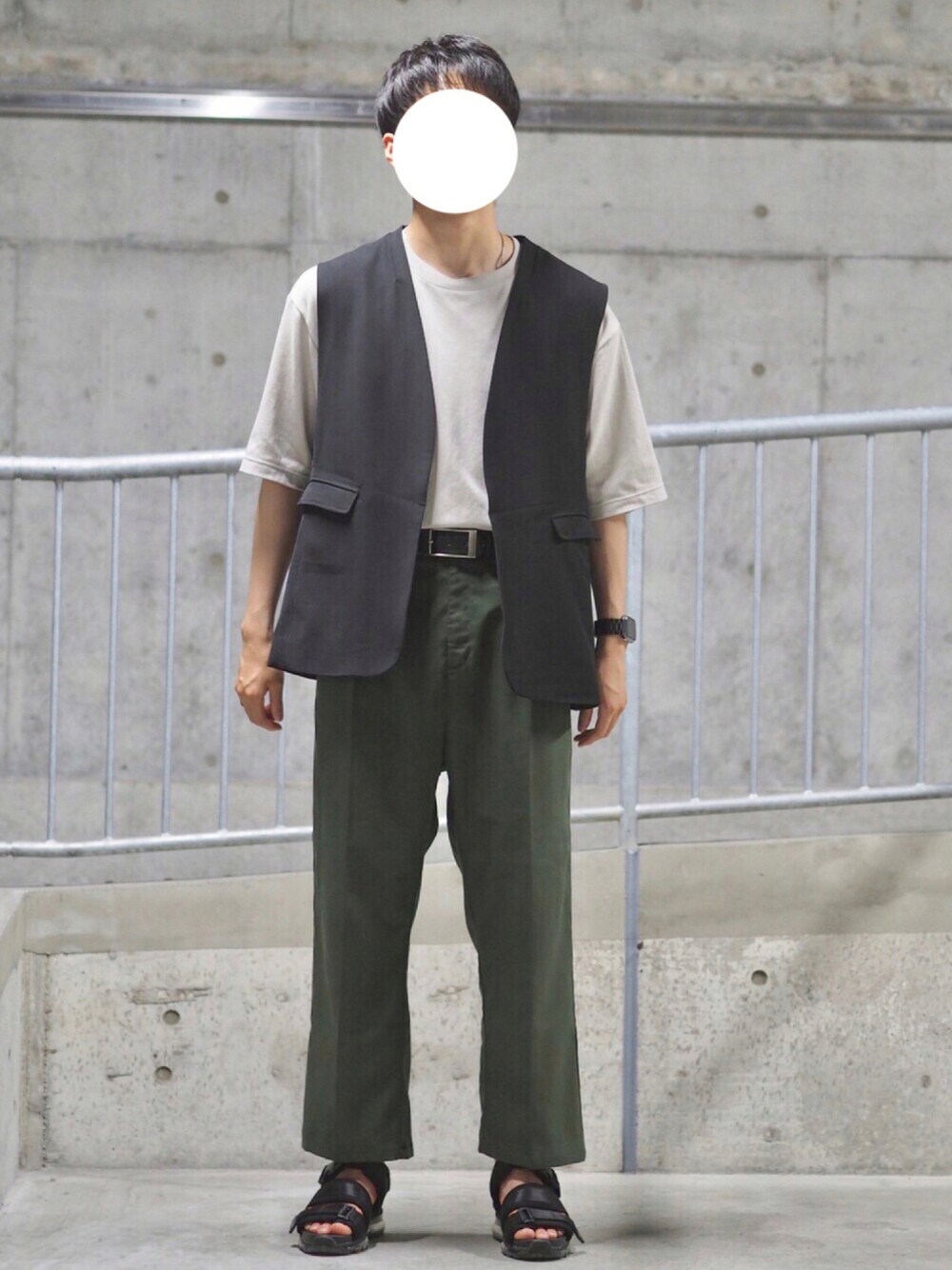 見ていただきありがとうございます!てもやです! 【黒ベスト×グリーンパンツ⚫️🟢】 最近ヘビーユーズしている、nilwayのベストにグリーン パンツを合わせたスタイルです! 発色が抑えめのグリーンパンツを採用することで、 そこまで尖った雰囲気にならないようにしています! (黒ベストでだいぶ雰囲気出ます😎笑) いいね、お気に入りしていただけると嬉しいです😊