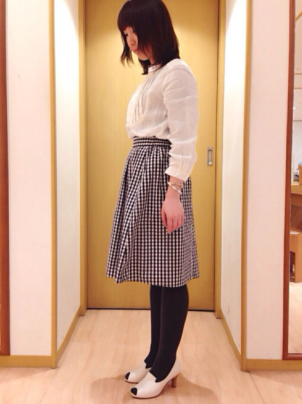 足元にホワイトを入れると一気に 春っぽくなるのでおすすめです🌸 グレーのタイツと合わせてみました!