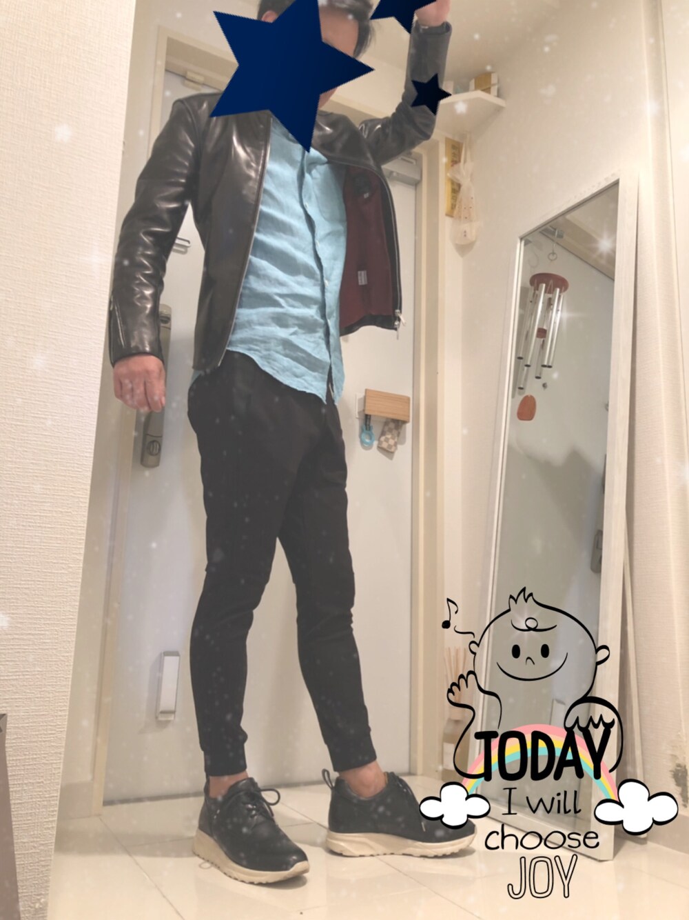 moyuuのライダースジャケット「ARCHIMEDES-HVY SHEEP W/DOWN LINER(シープレザー シングル ライダースジャケット ダウンライナーセット)」を使ったコーディネート