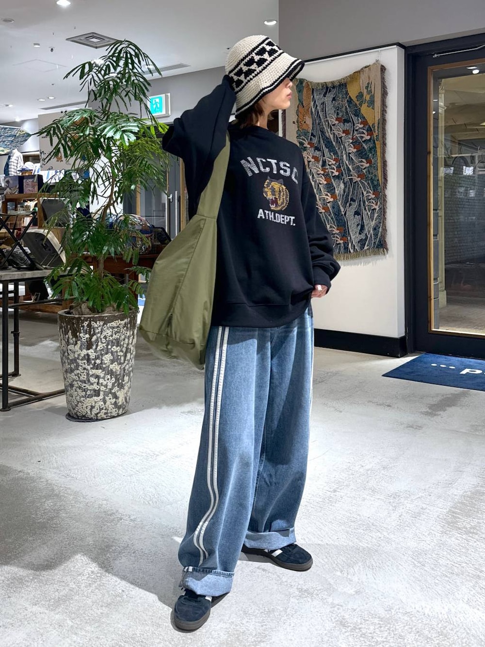 人気のデニムでメンズライクコーデ☺️ 私も買いたい買いたい買いたいと思ってるスウェット(我慢してます) 裏起毛じゃないので春までしっかり使えて嬉しいね🫶🏻 ハットや小物でまとめて完成〜〜! ずるっと履く感じがたまらなく可愛い🤤 上下Lサイズです!ご参考までに! もずのInstagram→