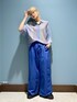 思いっきりブルーでまとめ春夏を意識してみましたー! トップスは透け感ありです インナー必須!(男女問わず) 生地が薄くて、ブラの形によっては 形がボコっと見えたりすることがあるので カップがしっかりしているブラやブラトップ(シームレス系のやつ)がオススメ🙆♀️ 胸ない私がブラトップで着るとち○びでてるみたいになったけど、形しっかりめの下着で着たら大丈夫でした(笑) (レースの下着でも中に着るタンクが厚手とかなら大丈夫そうです!) パンツは普通に形綺麗すぎて買おうかなと思ってます(4月に) Mはちょうど!てかんじだったけど着用のLだとダボッとも着れるしハイウエストにすれば脚長効果もあってスッキリ履けました! 生地も薄手でこの時期から夏までしっかり使えそうです〜!