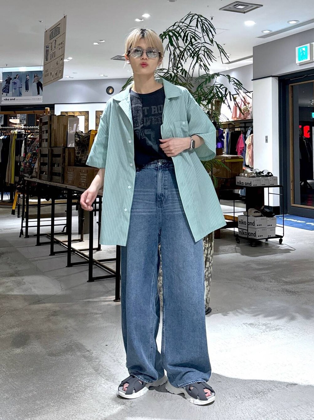 もず(niko and... 廿日市ゆめタウン)のサングラス「ウェリントンカラーサングラス」を使ったコーディネート