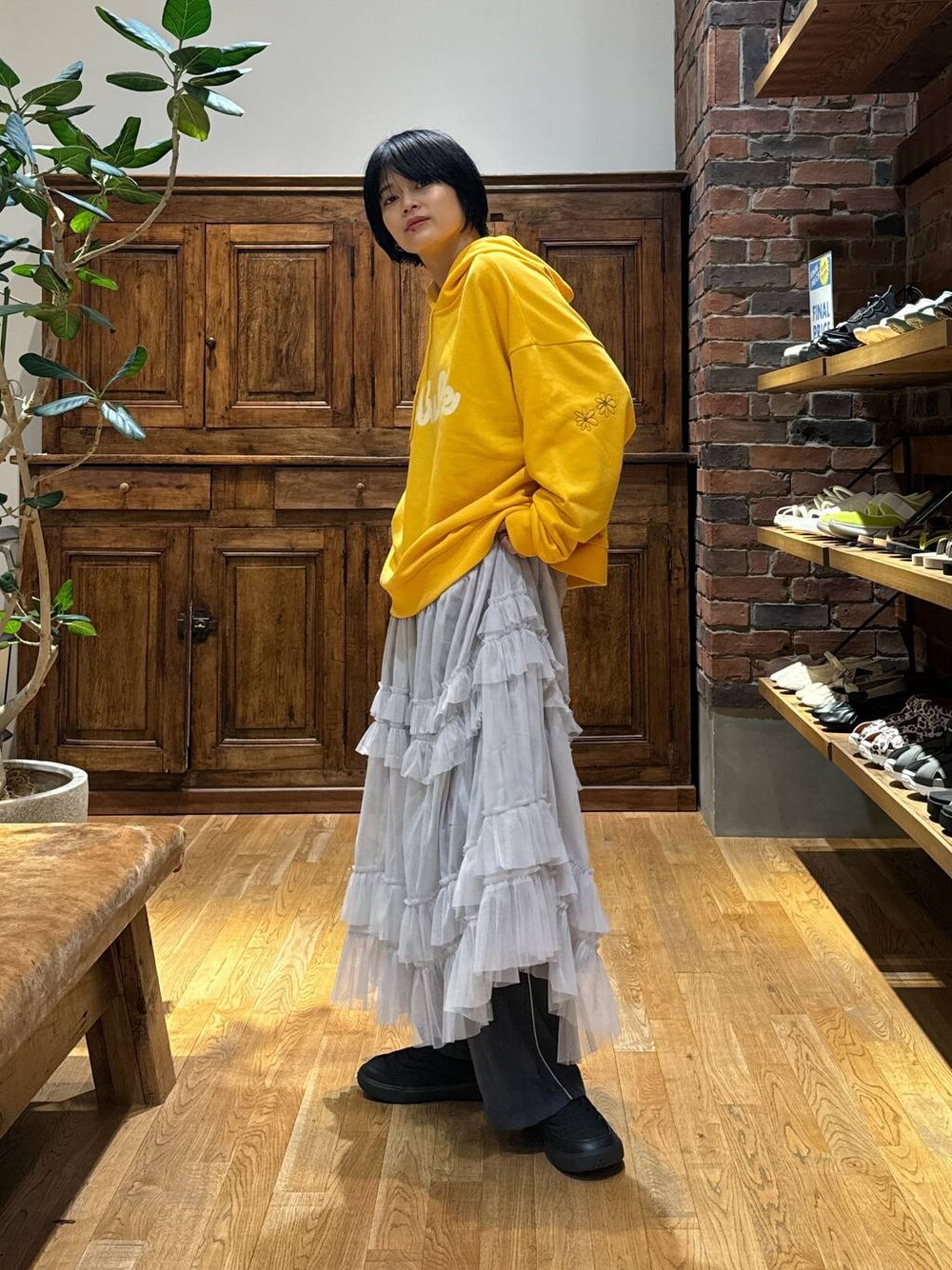 イエローパーカーはこんな感じでレイヤードスタイルも可愛い♡