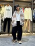 ベージュ系のトップス着る時はあえて黒を挟むことでメリハリコーデに変わるからおすすめ♡