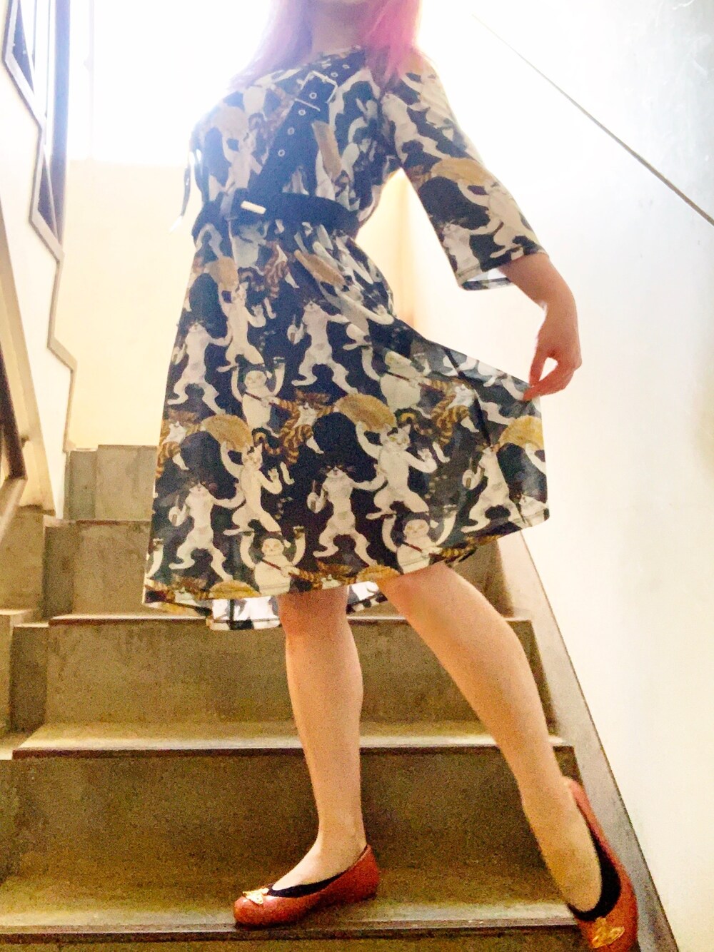 猫いっぱいワンピースは逆光
