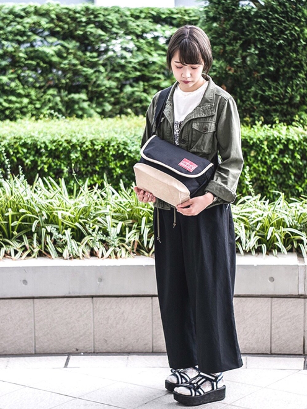 Manhattan Portage Staff(HEAD OFFICE)のメッセンジャーバッグ「Suede Fabric Casual Messenger」を使ったコーディネート